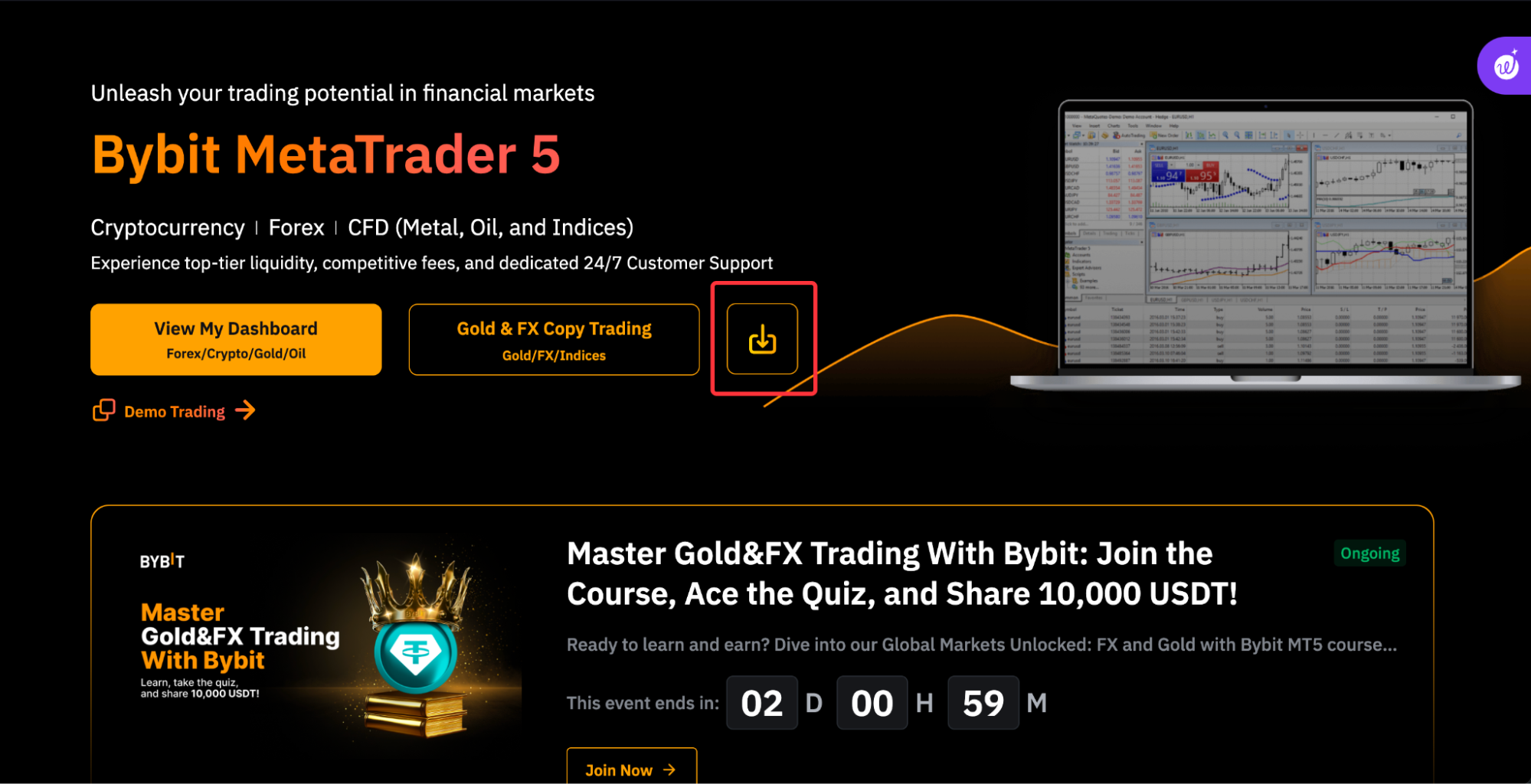 Step 3: Download and install the MetaTrader5 platform from the TradFi MT5 landing page on Bybit.