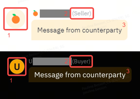 The mentions “Buyer” or “Seller” will be shown beside your counterparty’s nickname.
