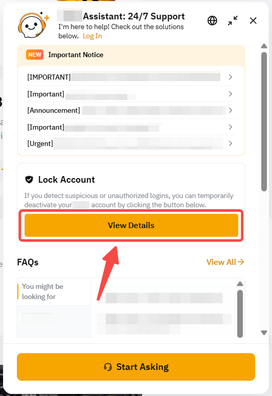 Note: If you're a phone-registered user or have lost access to your email, please reach out to our live chat service to immediately assist in freezing your account.