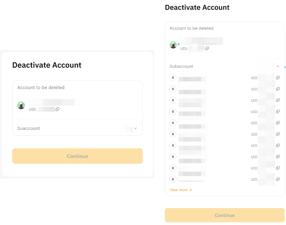 Step 3: Review and confirm the account and any associated subaccounts that should be deactivated.